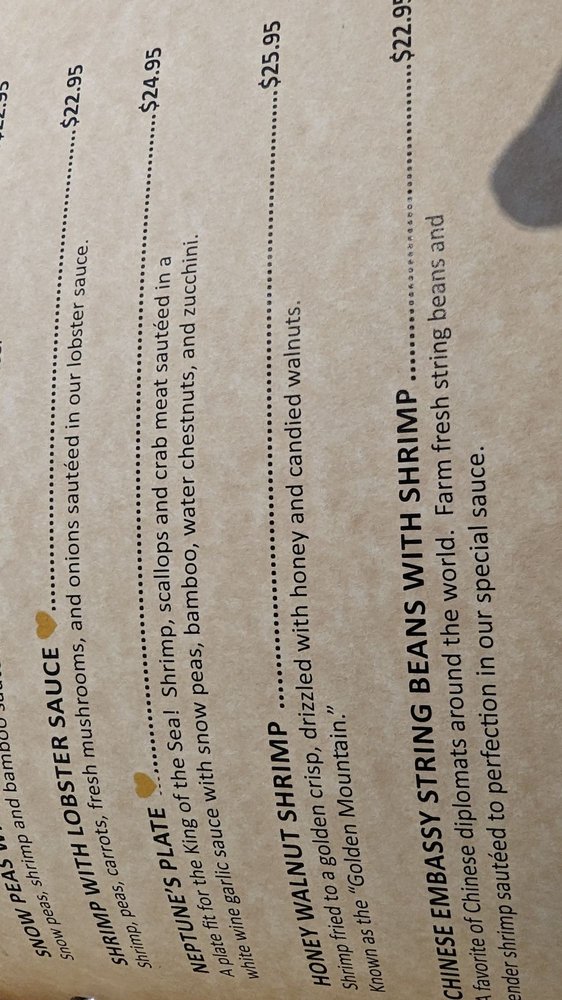 A favorite of Chinese diplomats around the world. Farm fresh string beans and tender shrimp sautéed to perfection in our special sauce.