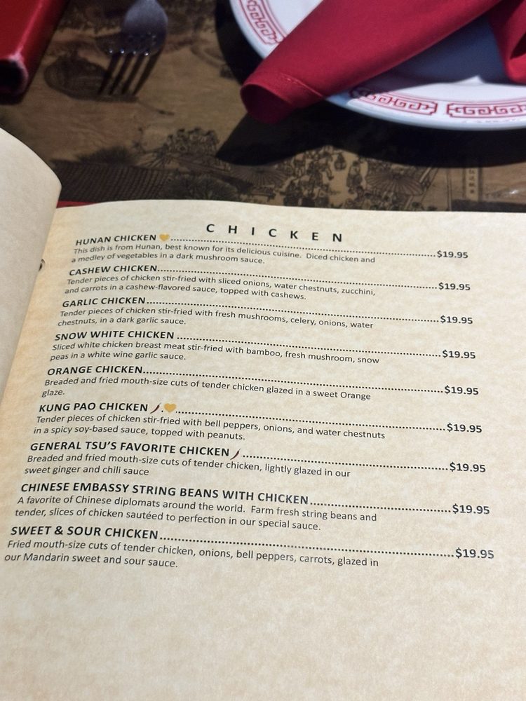 Sizzling rice soup, pot stickers, mongolian beef, sweet & sour pork, garlic chicken, north china vegetable deluxe, north china shrimp, beef with fresh broccoli, phoenix dragon, steamed rice.
